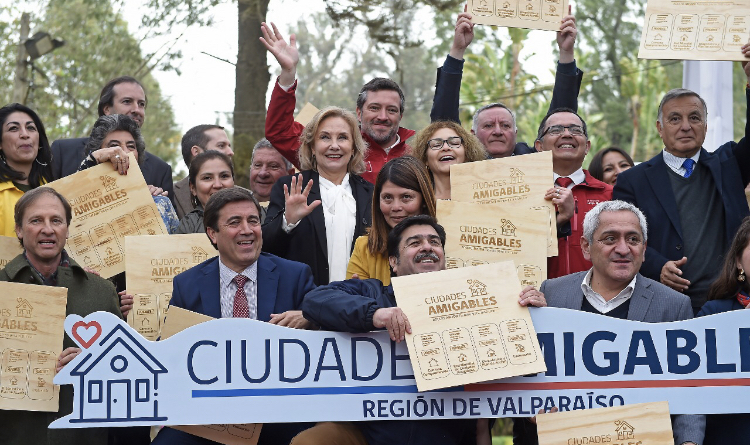 Este miércoles, la primera dama Cecilia Morel, de visita en la región de Valparaíso, y en compañía del Intendente Jorge Martínez y el director nacional de SENAMA, Octavio Vergara, lideró la ceremonia en la Quinta Vergara donde las comunas de la zona se comprometieron a trabajar para que sus ciudades sean amigables con los adultos mayores según los estándares de la Organización Mundial de la Salud.