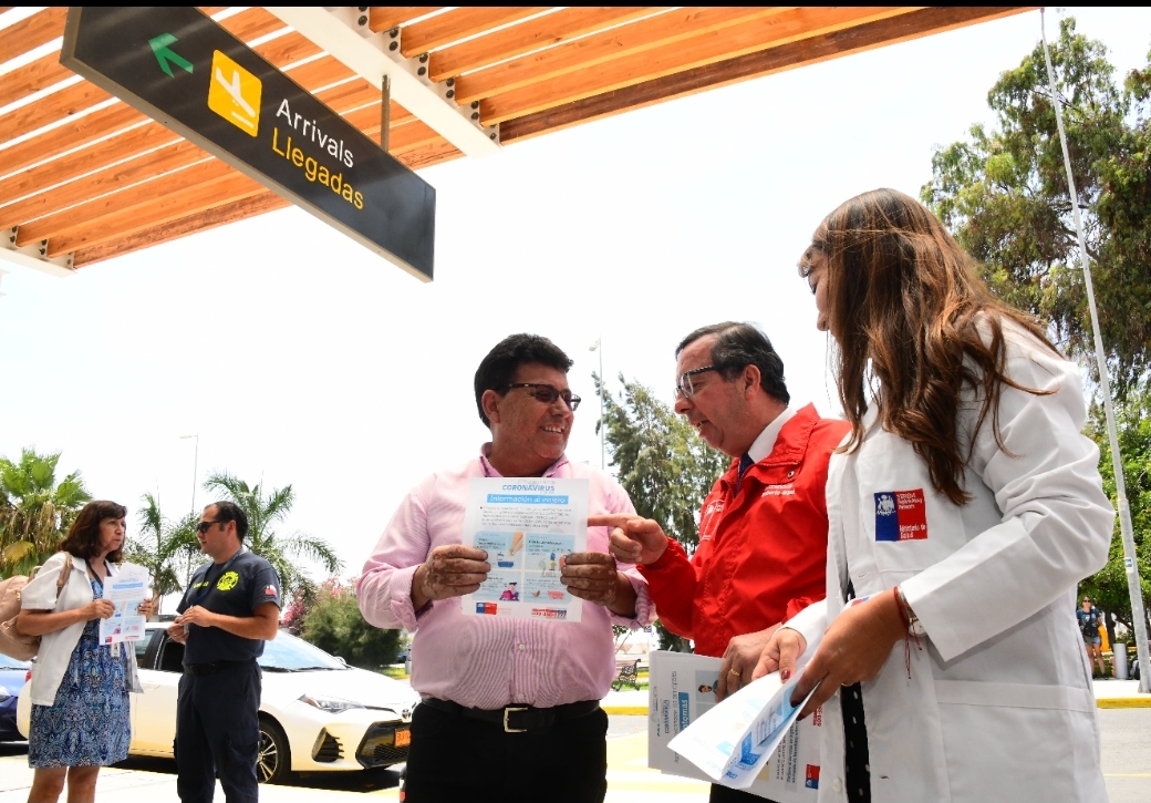 La medida forma parte del plan de acción entre el ministerio de Salud y la Dirección General de Aeronáutica Civil, la que fue explicada hoy por el intendente Roberto Erpel y la seremi de Salud Beatriz Chávez, quienes visitaron el terminal aéreo para entregar información preventiva a los pasajeros y reafirmar que en Chile no hay presencia del virus.