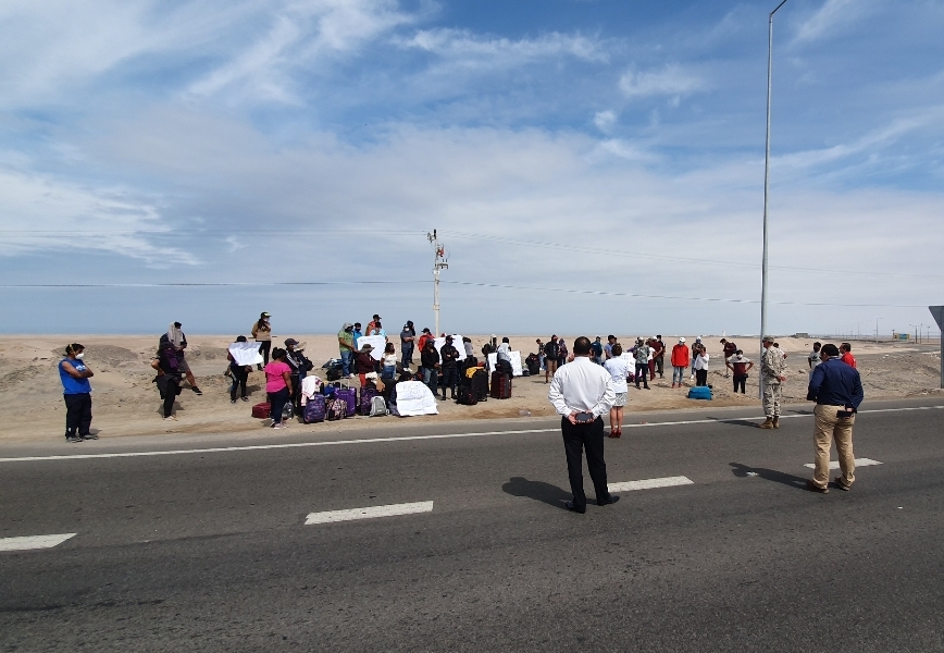 Un grupo de aproximadamente 60 peruanos llegaron caminando desde Arica al cruce del aeropuerto Chacalluta (cerca a la frontera con Perú), solicitando se los deje regresar al país. Asimismo, unos 90 mil venezolanos en encuentran pidiendo ayuda para sobrellevar este periodo de cuarentena por el coronavirus (COVID-19).
