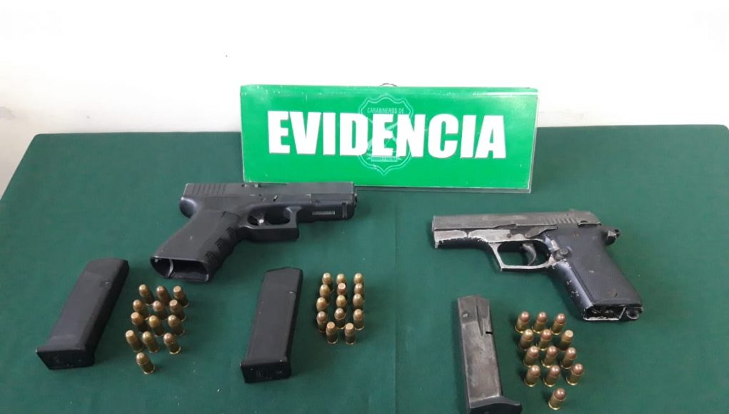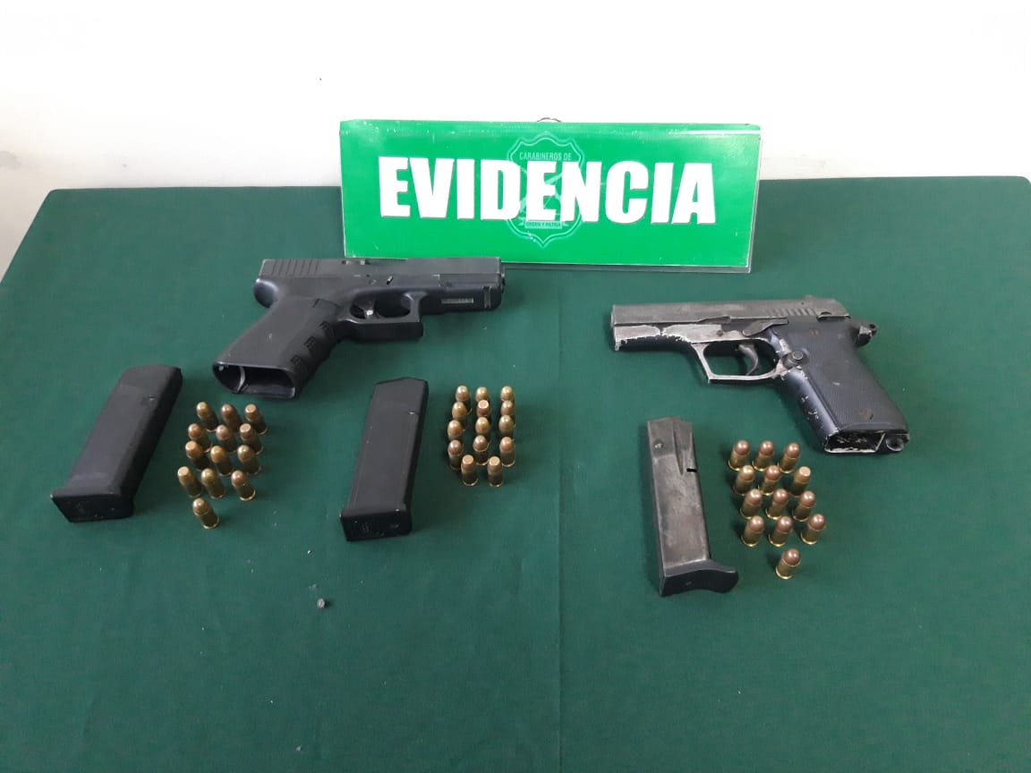Luego de una breve persecución, los tres sujetos fueron reducidos y detenidos en las inmediaciones del sector, lográndose recuperar dos armas de fuego, tipo pistolas, ambas cargadas con munición.