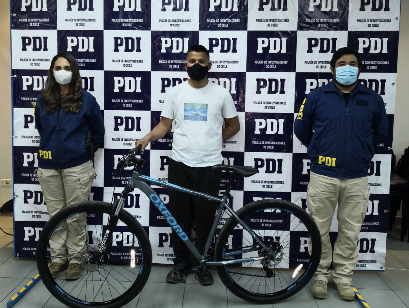 Mediante una denuncia efectuada por la víctima ante los oficiales de la Brigada de Investigación Criminal (Bicrim) Arica, fue posible la ubicación de una bicicleta sustraída a su propietario y la detención de un hombre por el delito flagrante de Receptación.