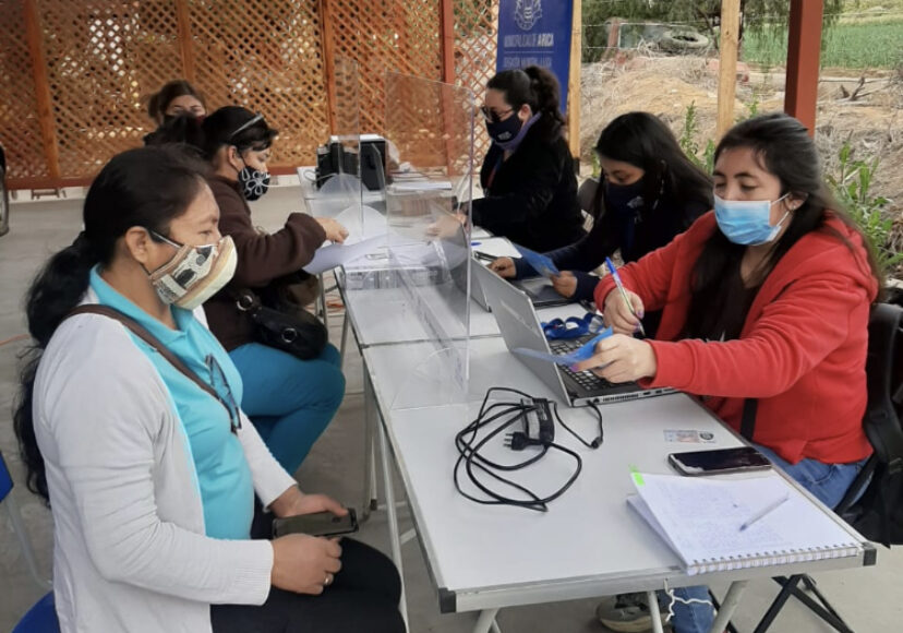 El viernes 4 septiembre de 2020, los funcionarios públicos trabajaron en la activación de clave única, tramitación del Registro Social de Hogares, subsidios y pensiones, en el kilómetro 8 del valle de Lluta, sector “El Morro”.