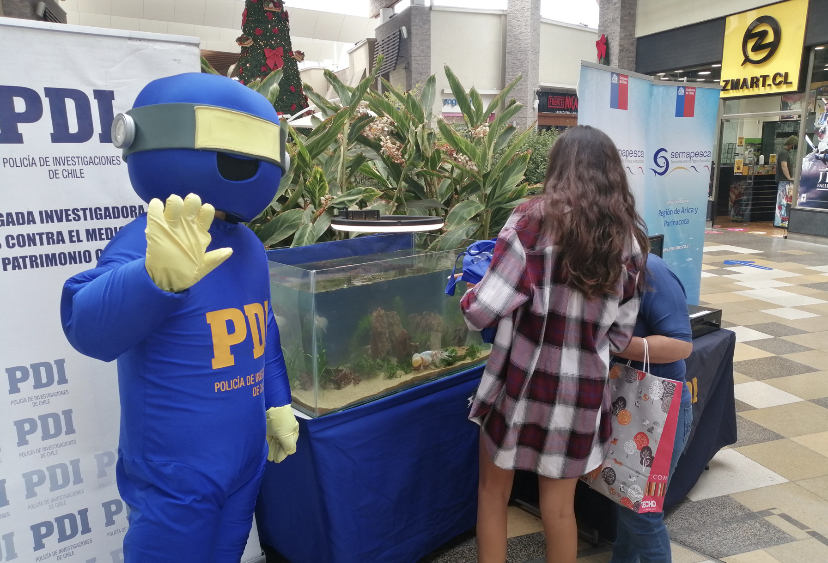 Dos de estas instituciones, la PDI, a través de su Brigada Investigadora de Delitos contra el Medioambiente y Patrimonio Cultural (Bidema) en conjunto con el Servicio Nacional de Pesca y Acuicultura (Sernapesca) de la Región de Arica y Parinacota, preocupadas por la temática, presentaron su campaña “No a la internación ilegal de especies ornamentales”, lanzada ayer en el mall Plaza Arica, con la que se busca informar y dar a conocer a la población respecto a los riesgos que significa la compra e ingreso clandestino de especies marinas ornamentales (peces, crustáceos o algas) que ponen en peligro el patrimonio sanitario del país al ser potenciales vectores de enfermedades exóticas.