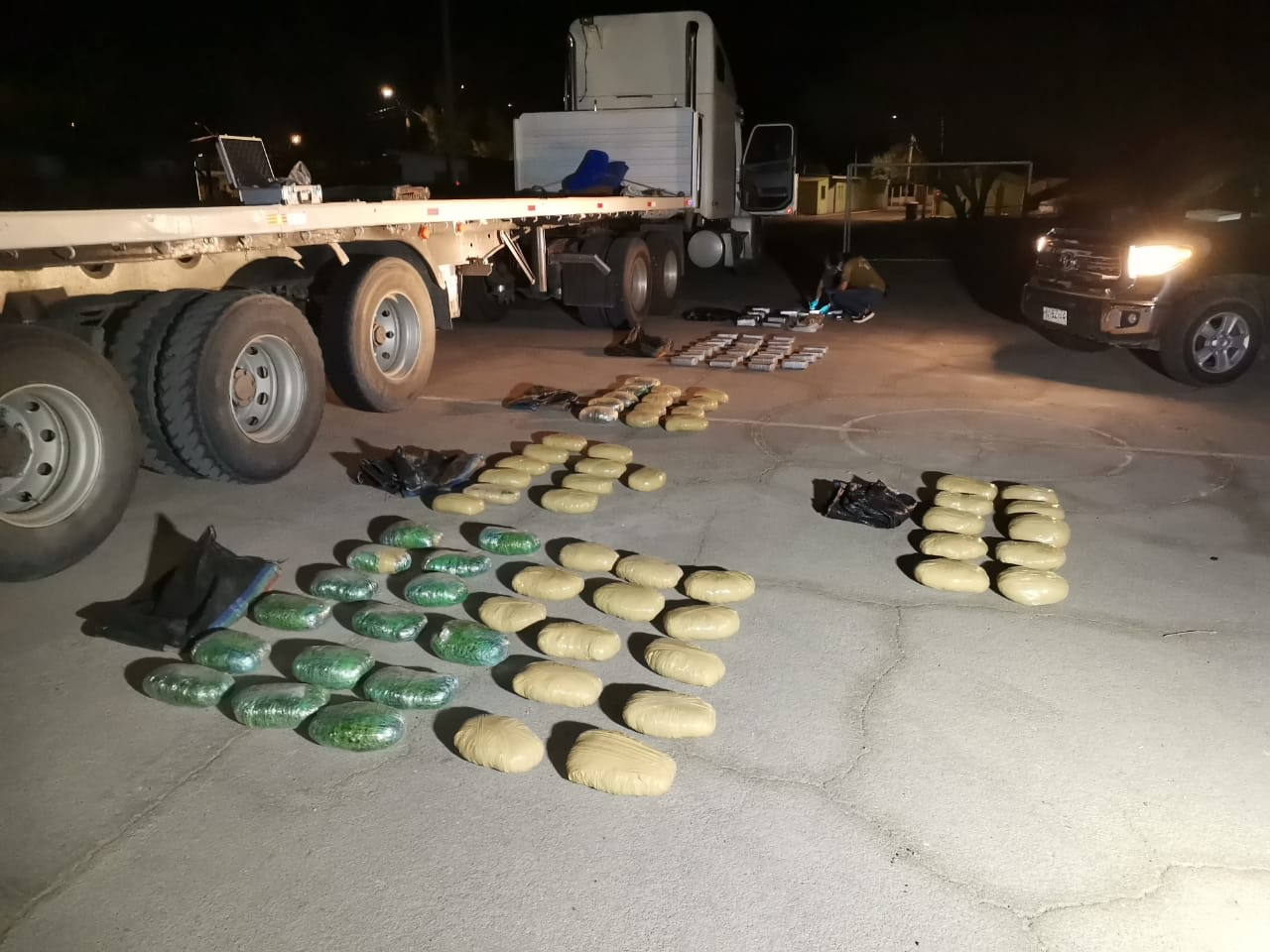 Un control rutinario de Carabineros del OS7 en la Ruta 5 Norte, específicamente en el kilómetro 1.968, sector de la Tenencia de Carreteras Arica, permitió el hallazgo de 104 kilos 15 gramos de Marihuana (208.030 dosis) y 8 kilos 310 gramos de Pasta Base de Cocaína (41.550 dosis) que el conductor de un camión de patente boliviana, dejó abandonados cuando se percató de la fiscalización que personal policial de ambas Unidades realizaban en el sector de la localidad de Cuya.