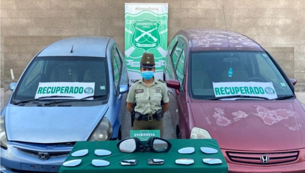 En el lugar, los efectivos policiales procedieron a la detención de los individuos e incautaron en la ruca, dos mochilas, un quitasol y una batería del mismo vehículo sustraído, más 12 espejos, los que están a la espera de ser identificados por sus propietarios.