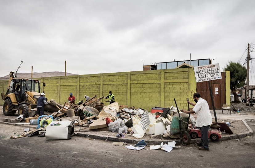 “Lo más común que bota la gente son colchones, sillones, tazas de baño en desuso, e incluso refrigeradores”, indicó José Maldonado, operador de cargador frontal de la Dimao.