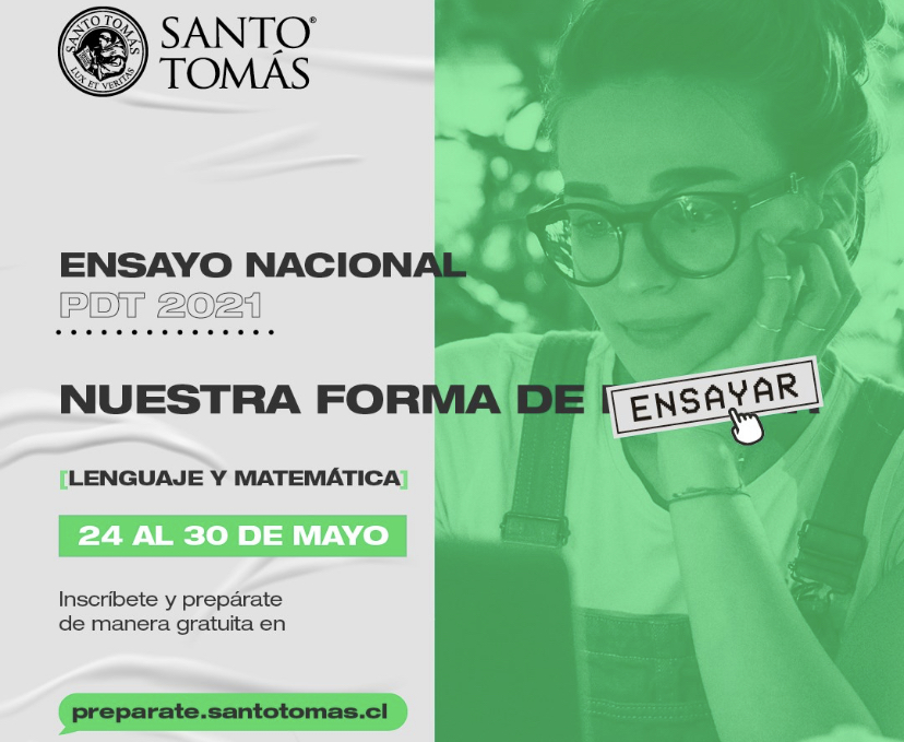 Con el propósito de brindar apoyo y herramientas para los alumnos de enseñanza media y egresados de cuarto medio, preparándolos para rendir una buena Prueba de Transición para la Admisión Universitaria (PDT), Santo Tomás organizará entre el 24 y 30 de mayo el Ensayo Nacional PDT 2021.