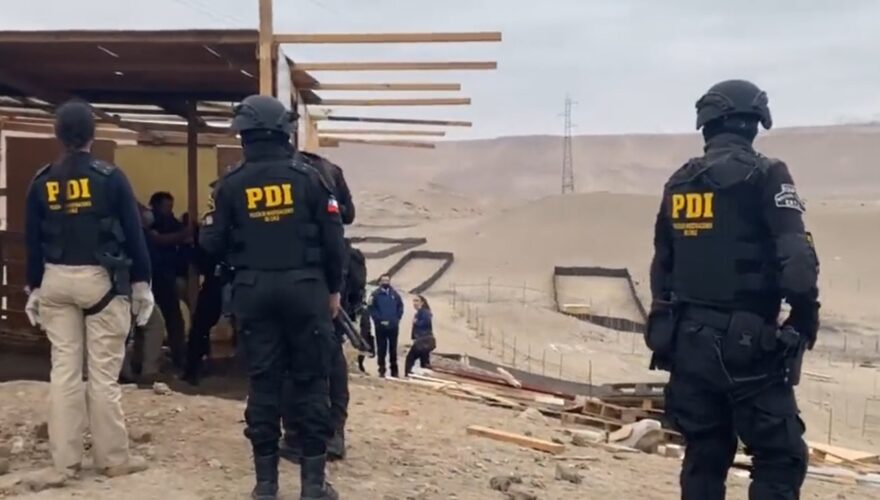 Esta diligencia dirigida por la Unidad de Análisis Criminal de la Fiscalía fue ejecutada por detectives de la Brigada Antinarcóticos y contra el Crimen Organizado (Brianco) de Arica, en coordinación con funcionarios de la Brigada Investigadora de Trata de Personas (Bitrap) Arica y la Prefectura Migraciones y Policía Internacional de Arica y Parinacota y corresponde a una arista en la investigación de la organización criminal transnacional conocida como “Tren de Aragua”. En este contexto, hace un par de semanas se allanaron 23 domicilios del sector de Cerro Chuño donde se detuvo a 17 personas y se incautaron armas de fuego y droga y se halló el cuerpo enterrado de un hombre.