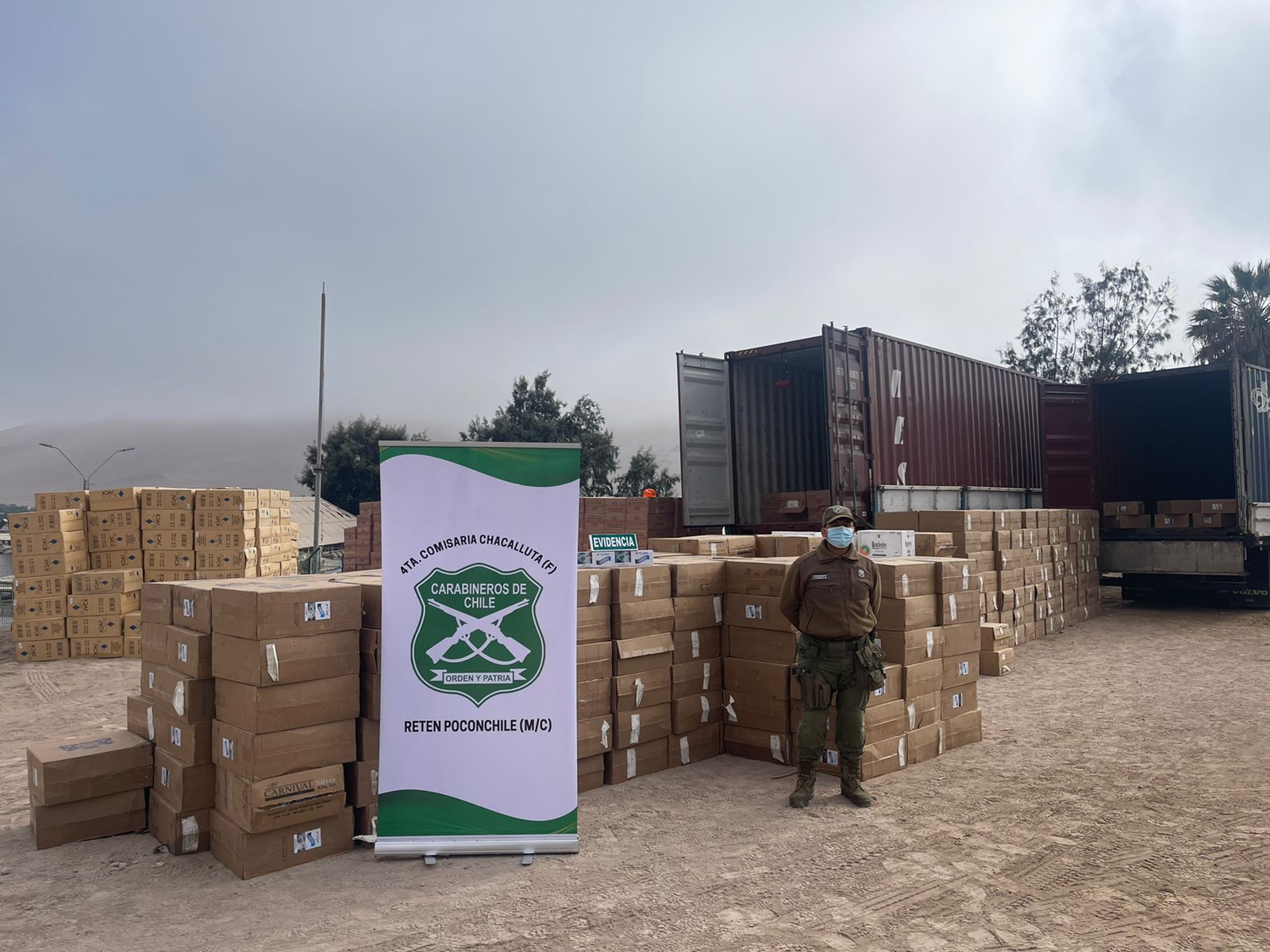 Luego de ser fiscalizados, y de una inspección, los efectivos policiales constataron que los documentos de dicha carga no eran coincidentes que lo que transportaban, por lo que se coordinan las diligencias respectivas junto a personal del Servicio Nacional de Aduanas, donde se somete a los camiones a una revisión mediante equipos scanner, comprobando que se trataba de un contrabando de cigarrillos.