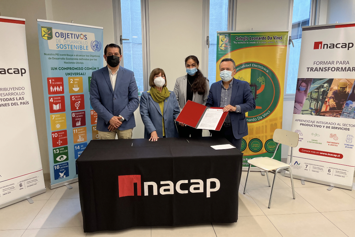 En una solemne ceremonia INACAP Sede Arica y el Colegio Leonardo Da Vinci, firmaron un acuerdo de pasantías para los estudiantes del establecimiento educacional, reconociendo la importancia de la iniciativa, como potente estrategia de aprendizaje vinculada al currículo de la Educación Media Técnico-Profesional, que combina la formación del colegio con la de otros espacios de aprendizaje como CFT e IP.