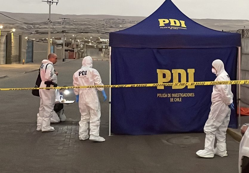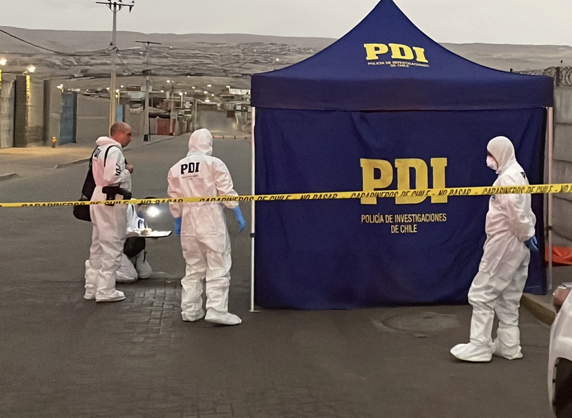 Detectives de la Brigada de Homicidios (BH) y peritos del Laboratorio de Criminalística (Lacrim) de la PDI Arica, investigan el homicidio con arma de fuego de un hombre, cuyo cuerpo fue encontrado en la vía pública con heridas consistentes a impactos de bala.