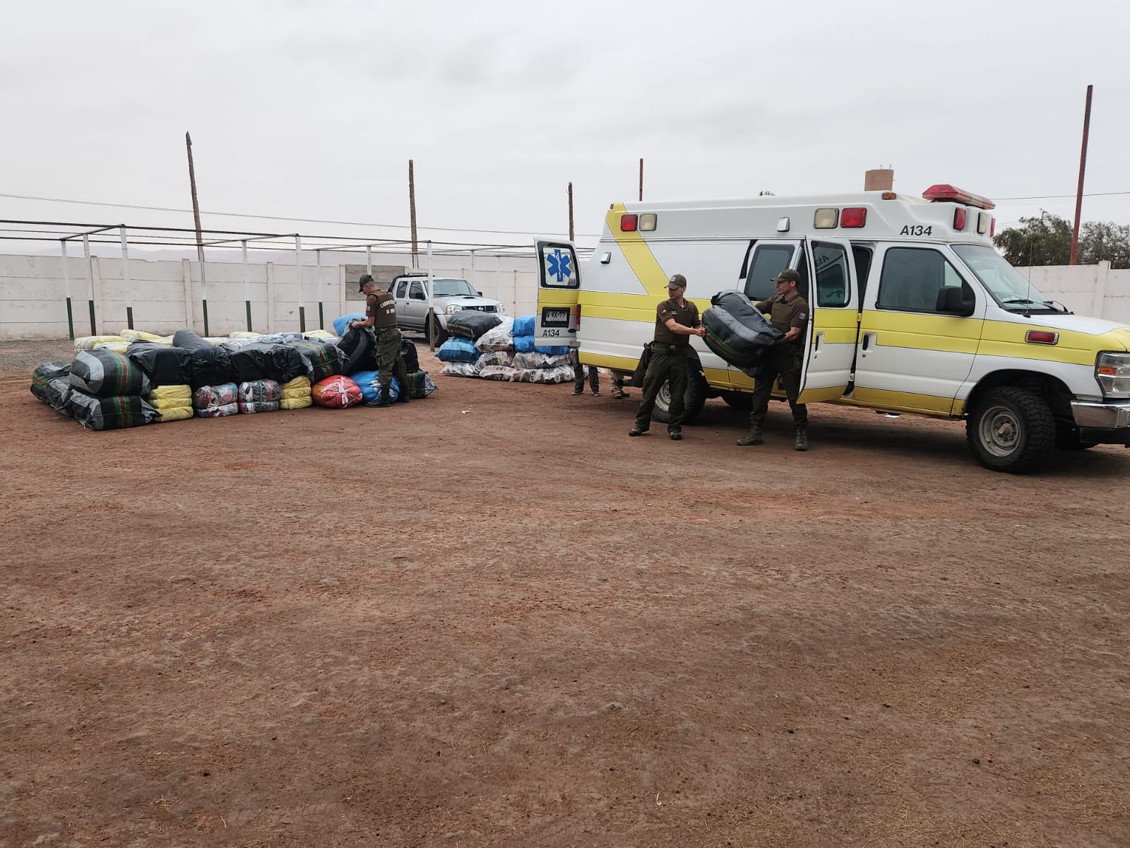 50 fardos de ropa usada y 21 sacos de calzado de diferentes marcas y modelos, decomisó Carabineros en la ruta 5 Norte, donde fue fiscalizado un vehículo que simulaba ser una ambulancia, con los mismos colores e incluso balizas, situación que aprovechaba para desplazarse y transportar especies de contrabando.