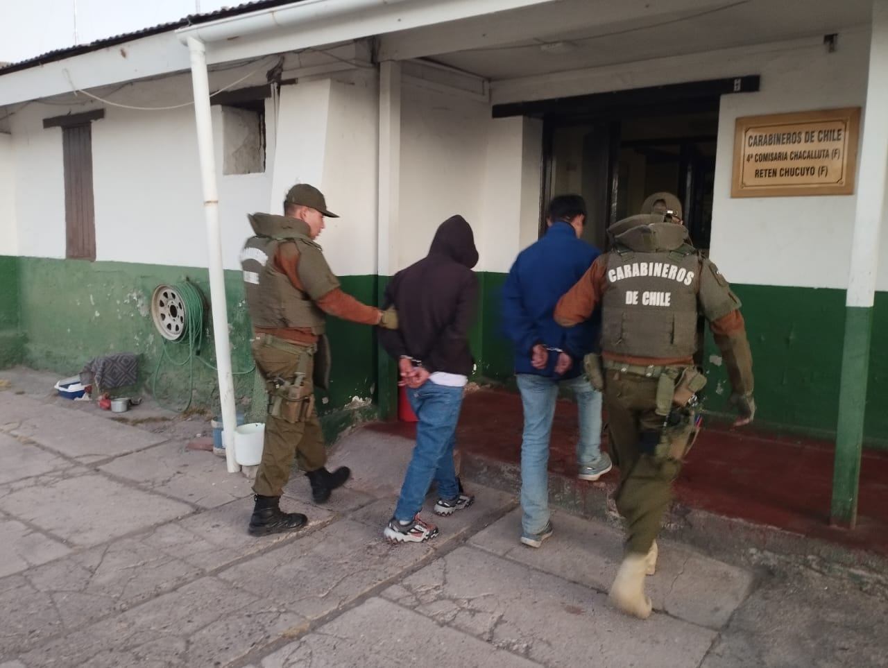 En el lugar, fueron detenidos ambos individuos, por el delito de receptación de vehículo e intento de homicidio a Carabinero en acto del servicio, quedando posteriormente a disposición de la Fiscalía local de Arica para la audiencia de control, informó el oficial jefe.