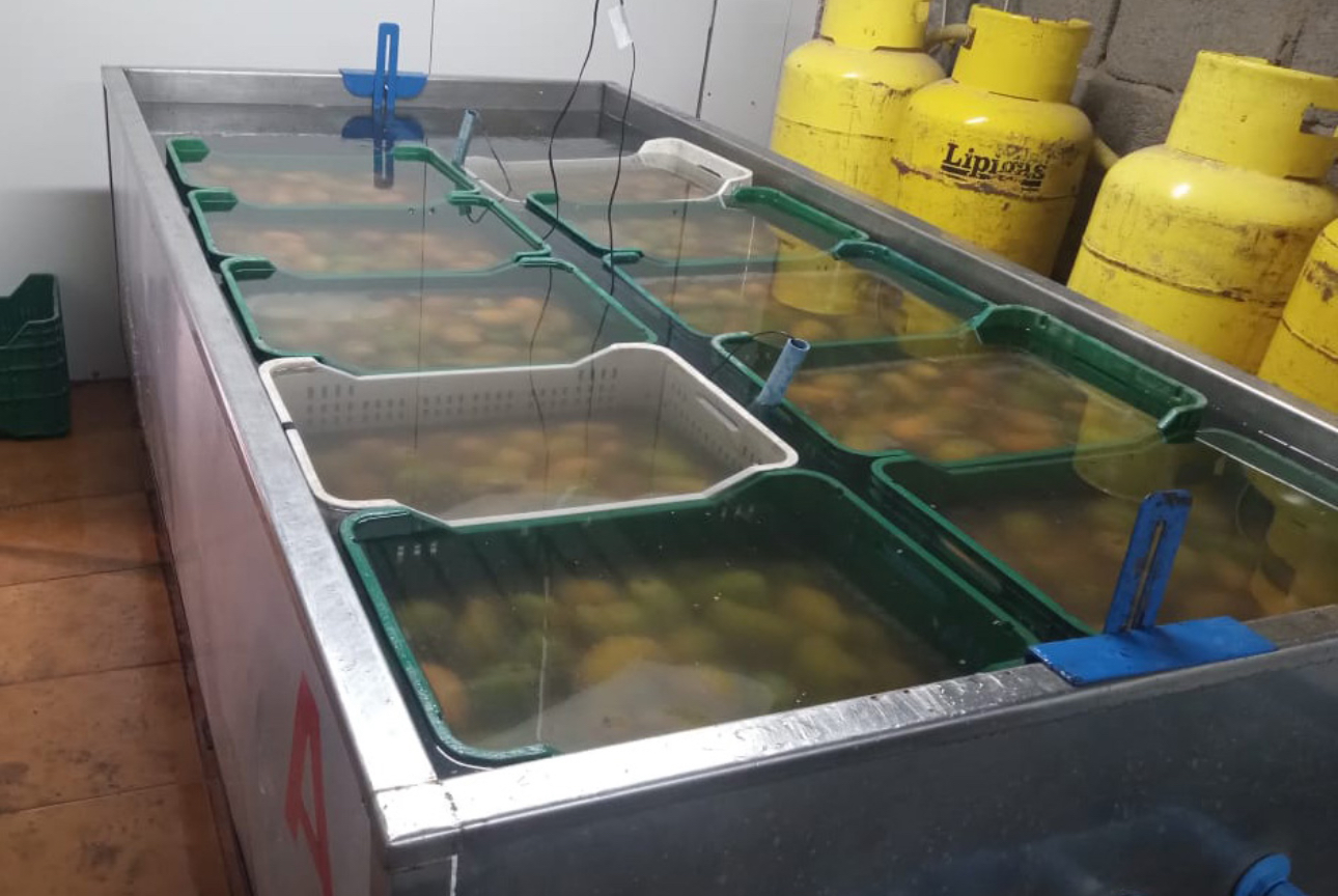 La planta de tratamiento cuarentenario hidrotérmico, ubicada en el valle de Azapa, aplica un proceso en el que los mangos son sumergidos en agua a una temperatura constante de 67 grados Celsius durante 65 minutos. Este tratamiento elimina de forma segura cualquier posible presencia de la mosca de la fruta (Ceratitis capitata), lo que permite cumplir con las exigencias fitosanitarias establecidas por el SAG. La planta tiene una capacidad de tratamiento de hasta 1000 kilos de mango por ciclo.