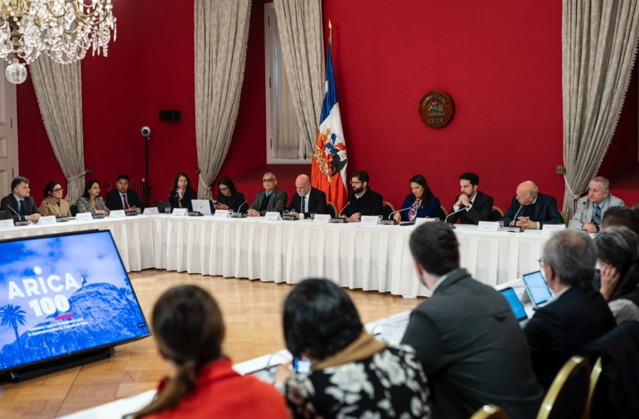 El Presidente de la República, Gabriel Boric, inauguró -al medio día de este lunes 9 de junio- en el Palacio de La Moneda la primera sesión de la Comisión Asesora Presidencial “Arica 100” para la conmemoración del centenario del Tratado de Lima junto al ministro del Interior, Álvaro Elizalde; la ministra secretaria general de la Presidencia (Segpres), Macarena Lobos, y el subsecretario de la Segpres, Nicolás Facuse.