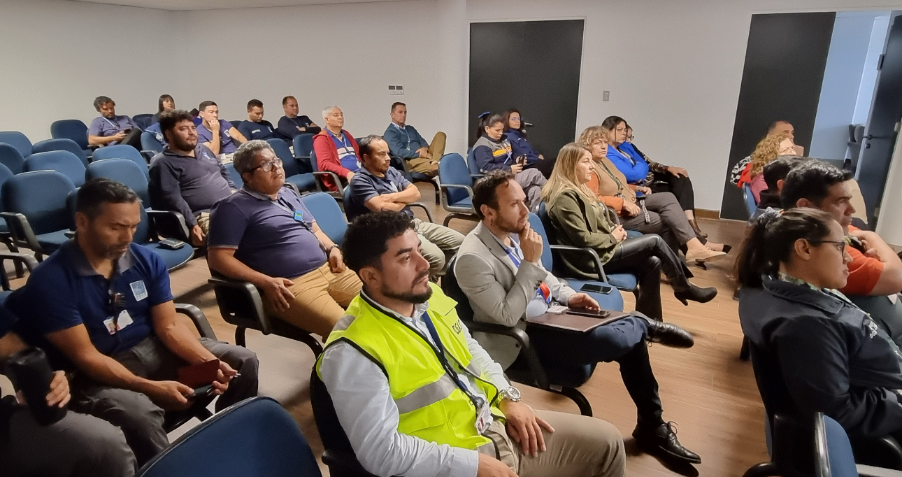 Una de las actividades programadas por el Día de la Concientización del Cáncer a la Próstata, fue la realización de exposiciones educativas en lugares de trabajo. Aquí personal de Salud efectúa una intervención para funcionarios de la Dirección de Aeronáutica Civil (DGAC), en el aeropuerto Chacalluta.