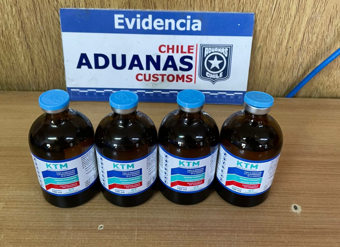 Un segundo procedimiento dejó en evidencia a la chilena K.Y.V.V., quien al pasar a control por la máquina de rayos x fue apartada por los fiscalizadores de Aduanas para una revisión más detallada: ocultaba dentro de su polerón 4 frascos con 100 ml de ketamina líquida cada uno.