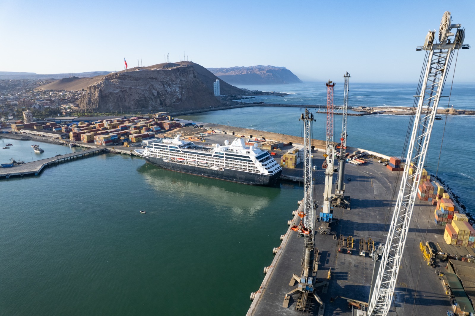 Esta mañana recaló en el puerto de Arica el Ms. Azamara Quest, el tercer crucero de la Temporada 2025-2026.