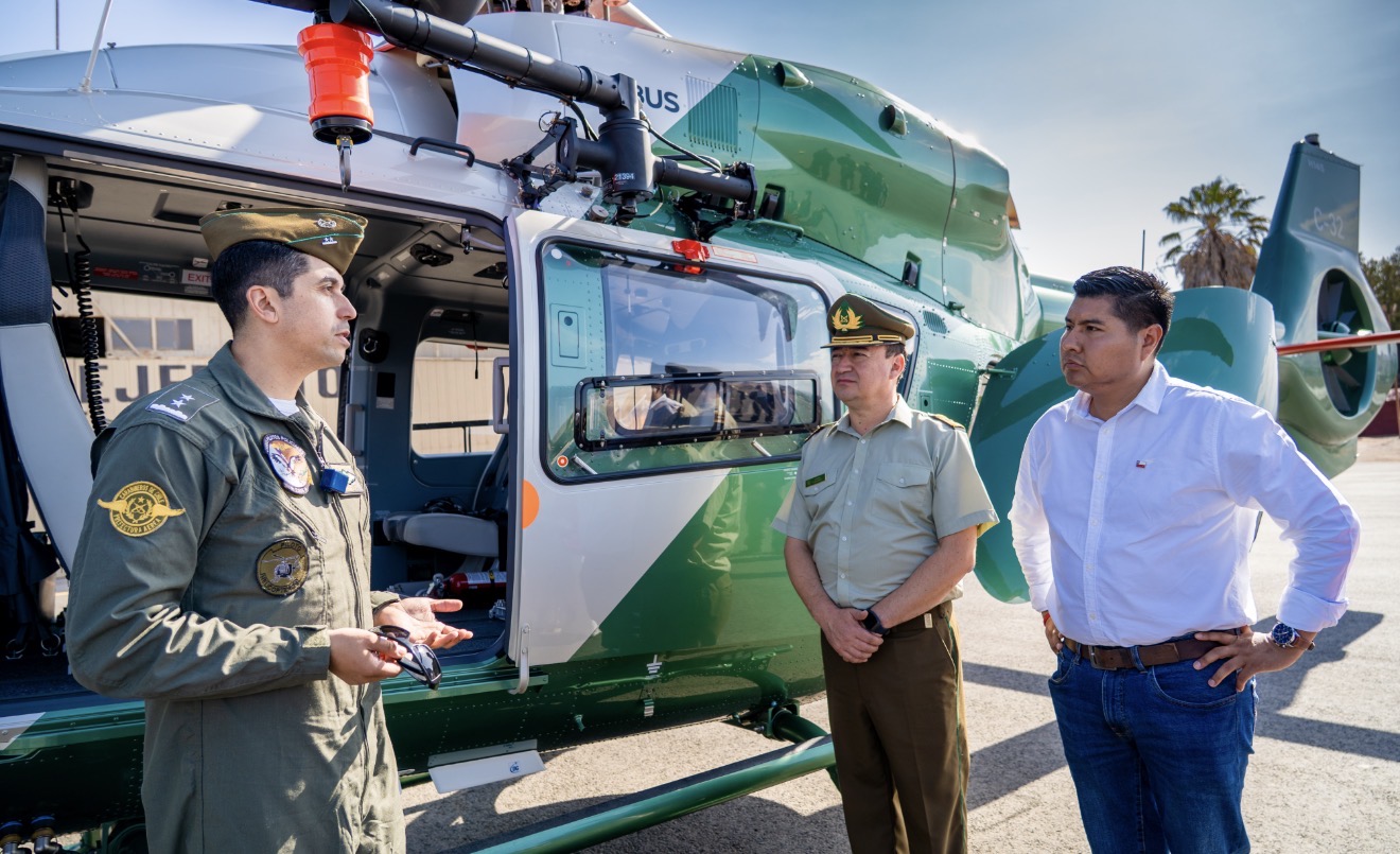 El nuevo helicóptero Airbus modelo H-145 de Carabineros, adquirido con recursos del Fondo Nacional de Desarrollo Regional (FNDR) del Gobierno Regional de Arica y Parinacota, ya se encuentra operativo en la ciudad. La moderna aeronave fue inspeccionada en el aeródromo El Buitre por el gobernador regional, Diego Paco, junto a miembros del Consejo Regional, marcando un hito en la capacidad de respuesta operativa de la región.