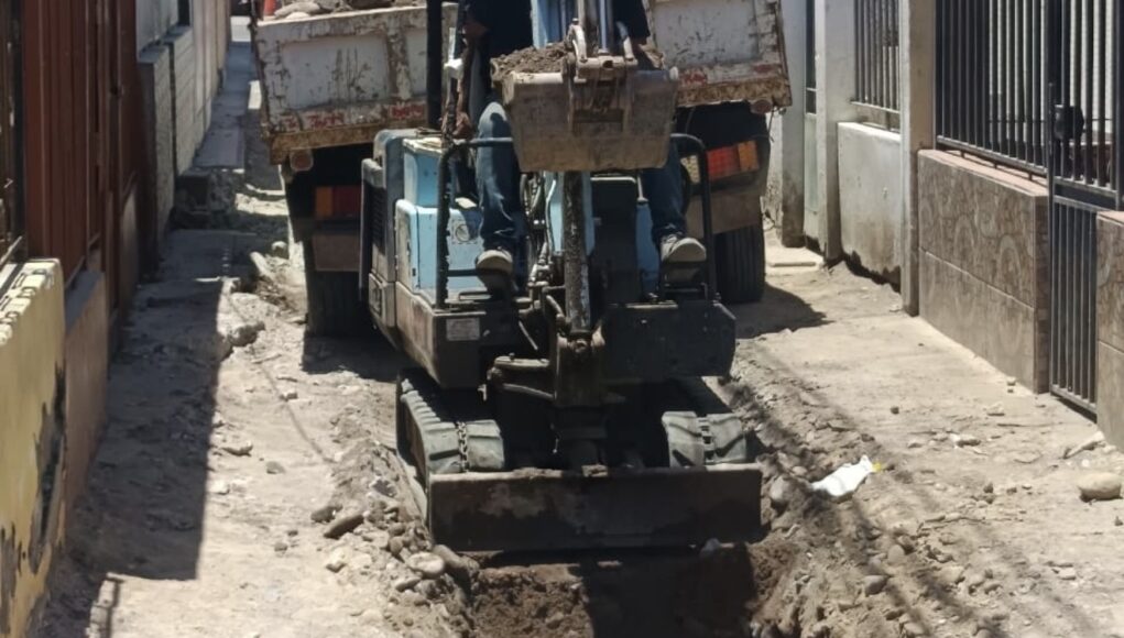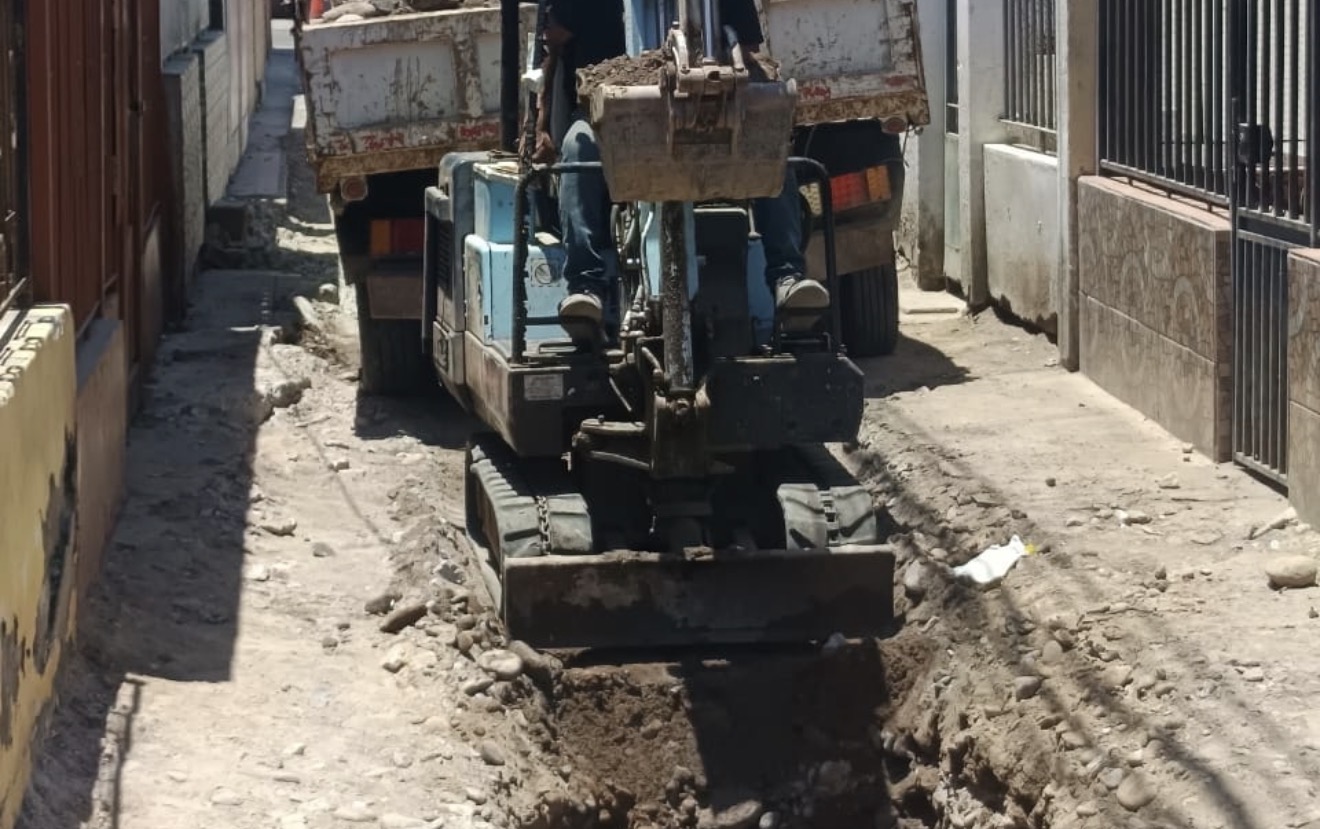 • La obra presenta un 84% de avance, se ejecuta en modalidad zanja abierta y se desarrolla en pasajes estrechos, con maquinaria adaptada para espacios reducidos.